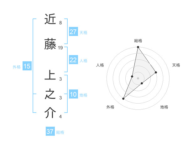 近藤 上之介さんを姓名の画数から五運を鑑定