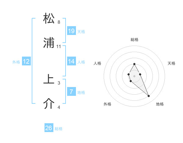 松浦 上介さんの総格は26画の2点!