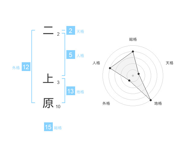 二 上原さんの地格は13画の5点!