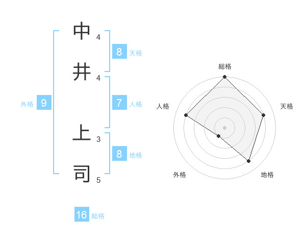 中井 上司さんの天格は8画の4点!