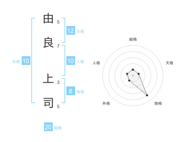 由良 上司さんの総格は20画の1点!