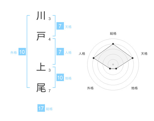 川戸 上尾さんの総格は17画の4点!