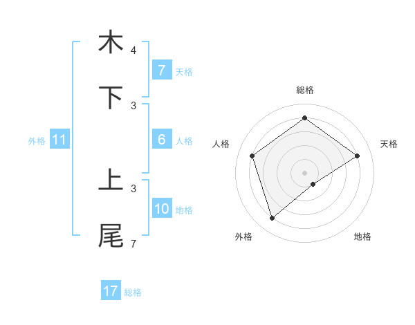 木下 上尾さんの総格は17画の4点!