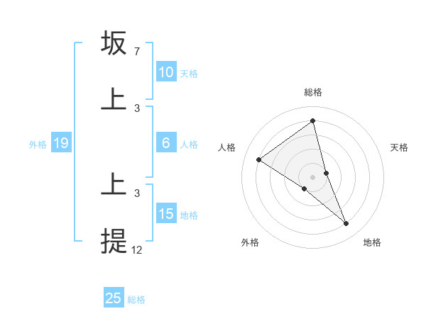 坂上 上提さんの地格は15画の4点!