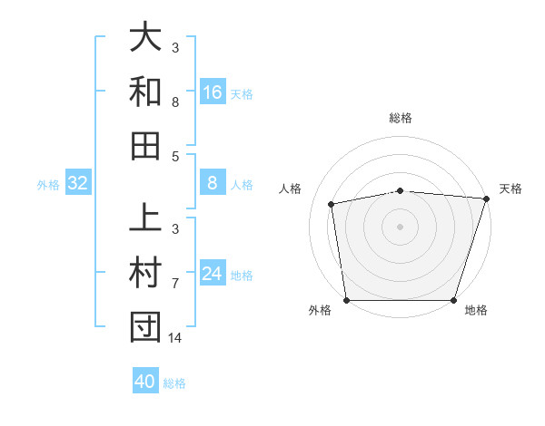 大和田 上村団さんの外格は32画の5点!