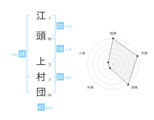 江頭 上村団さんを姓名の画数から五運を鑑定