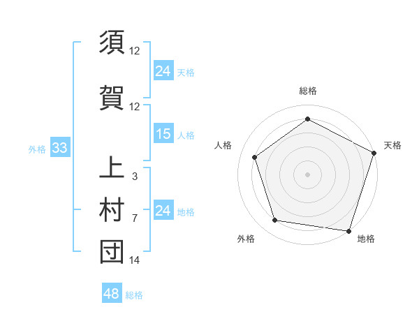 須賀 上村団さんの地格は24画の5点!