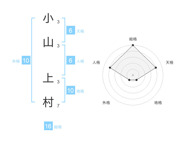 小山 上村さんの総格は16画の5点!