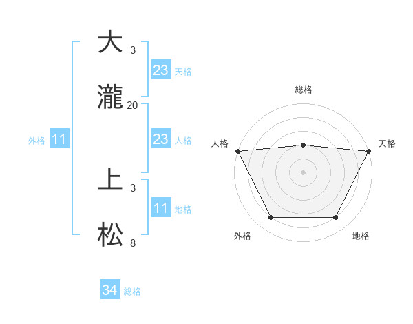大瀧 上松さんを姓名の画数から五運を鑑定