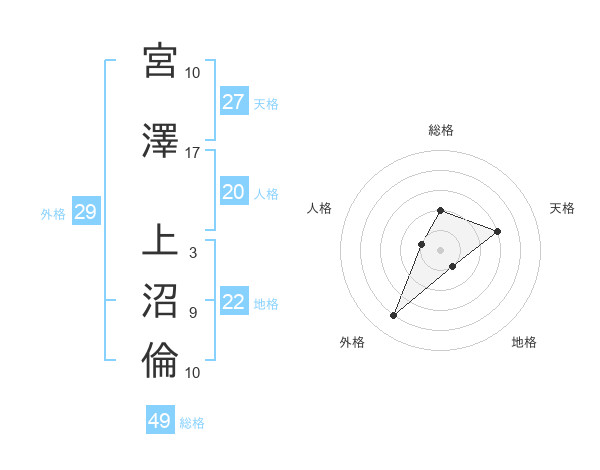 宮澤 上沼倫さんを姓名の画数から五運を鑑定