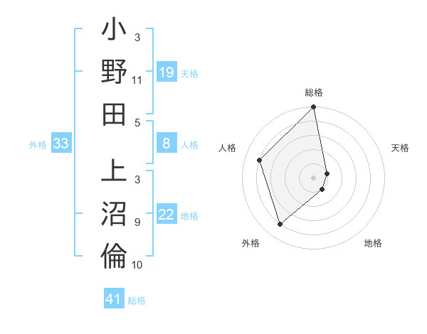 小野田 上沼倫さんを姓名の画数から五運を鑑定