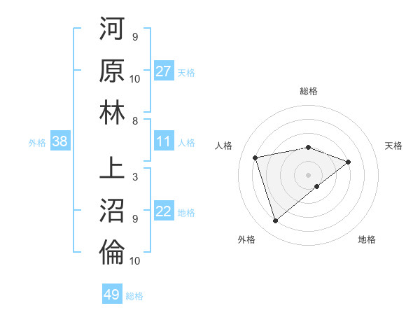 河原林 上沼倫さんを姓名の画数から五運を鑑定