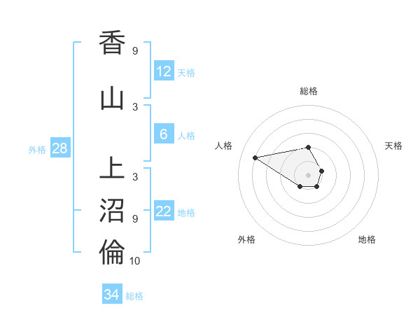香山 上沼倫さんを姓名の画数から五運を鑑定
