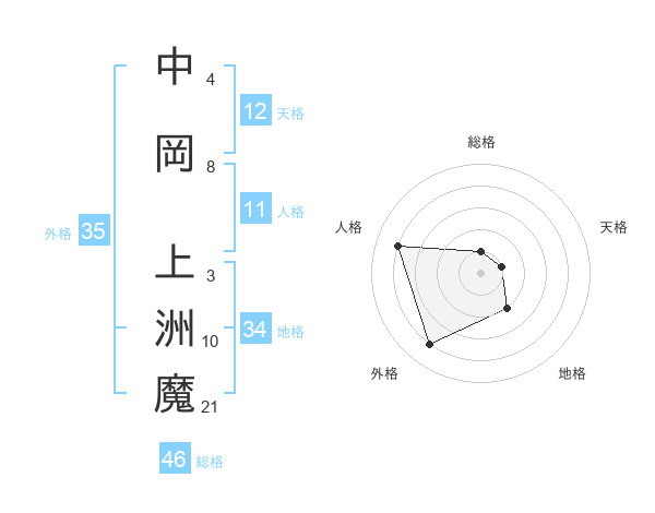 中岡 上洲魔さんを姓名の画数から五運を鑑定