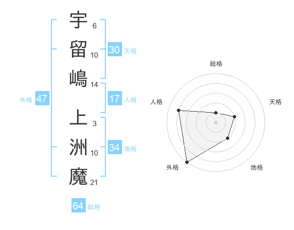 宇留嶋 上洲魔さんの外格は47画の5点!