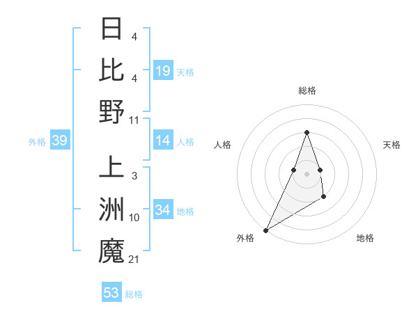 日比野 上洲魔さんを姓名の画数から五運を鑑定