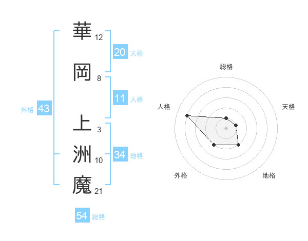 華岡 上洲魔さんを姓名の画数から五運を鑑定