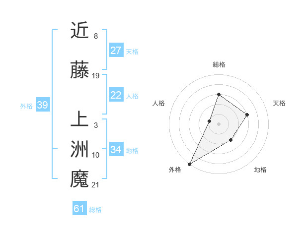 近藤 上洲魔さんの外格は39画の5点!