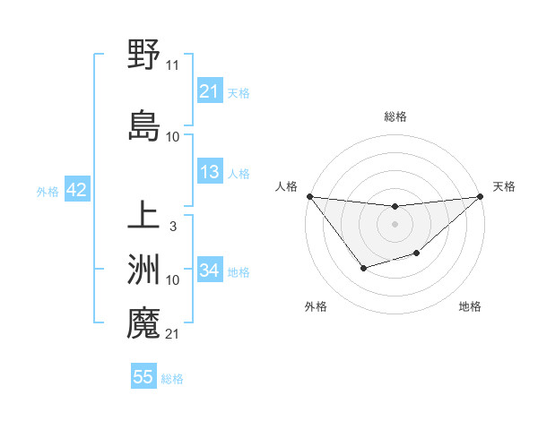 野島 上洲魔さんを姓名の画数から五運を鑑定