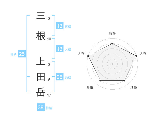 三根 上田岳さんを姓名の画数から五運を鑑定