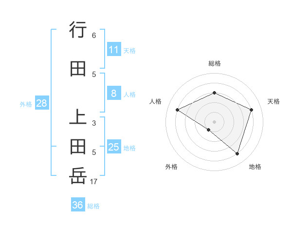 行田 上田岳さんを姓名の画数から五運を鑑定