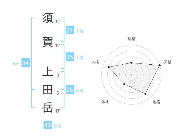 須賀 上田岳さんを姓名の画数から五運を鑑定