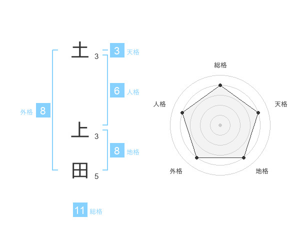 土 上田さんの地格は8画の4点!
