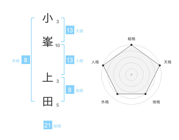 小峯 上田さんの天格は13画の5点!