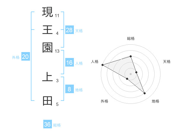 現王園 上田さんの人格は16画の5点!