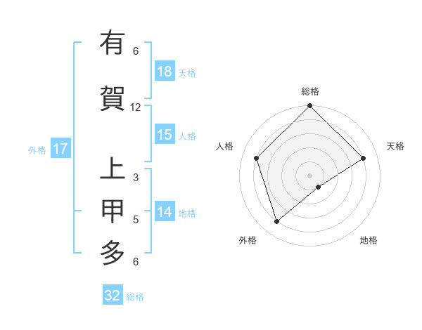 有賀 上甲多さんの総格は32画の5点!
