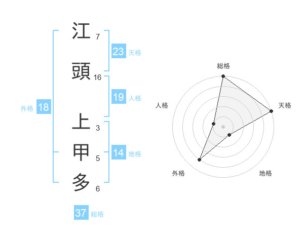 江頭 上甲多さんを姓名の画数から五運を鑑定
