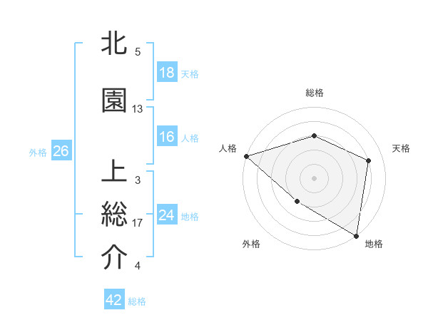 北園 上総介さんの総格は42画の3点!