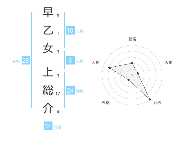 早乙女 上総介さんを姓名の画数から五運を鑑定