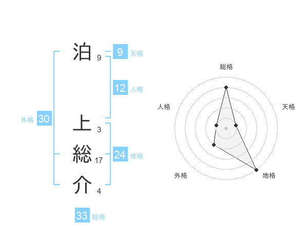 泊 上総介さんの総格は33画の4点