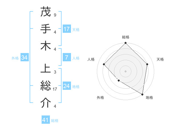 茂手木 上総介さんの天格は17画の4点!