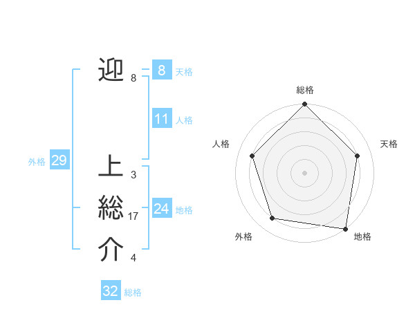 迎 上総介さんの天格は8画の4点!
