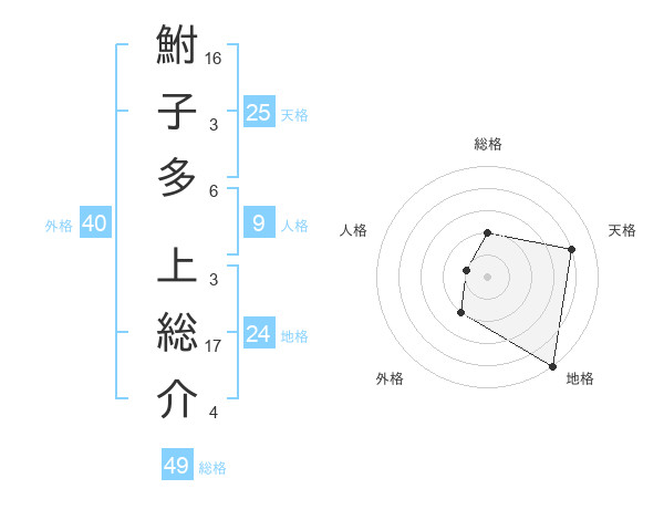 鮒子多 上総介さんを姓名の画数から五運を鑑定
