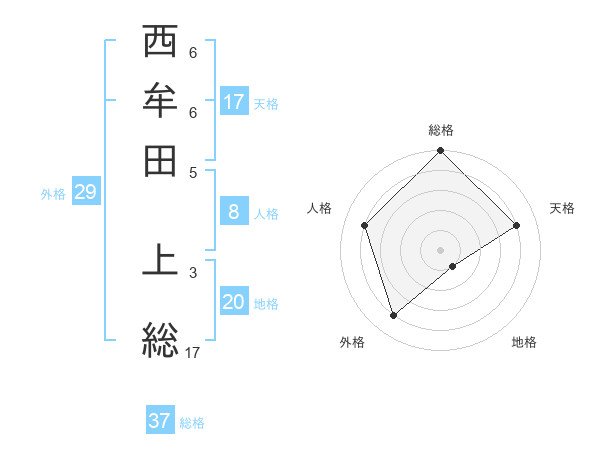 西牟田 上総さんを姓名の画数から五運を鑑定