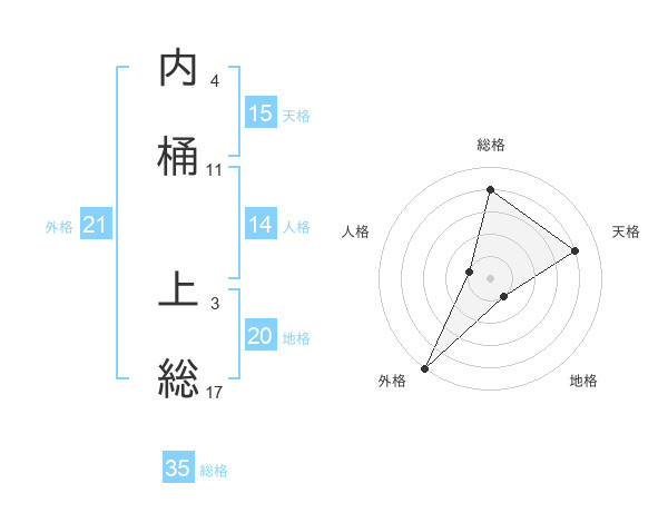 内桶 上総さんの天格は15画の4点!