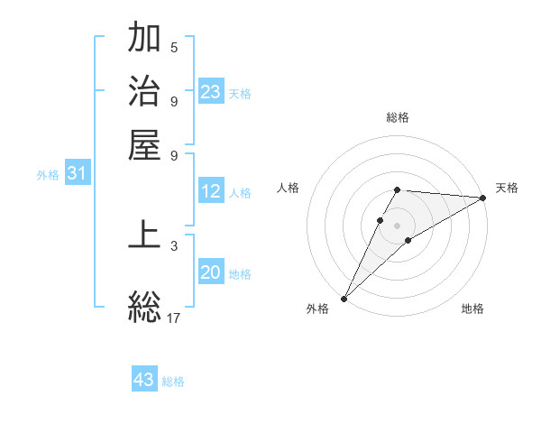 加治屋 上総さんを姓名の画数から五運を鑑定