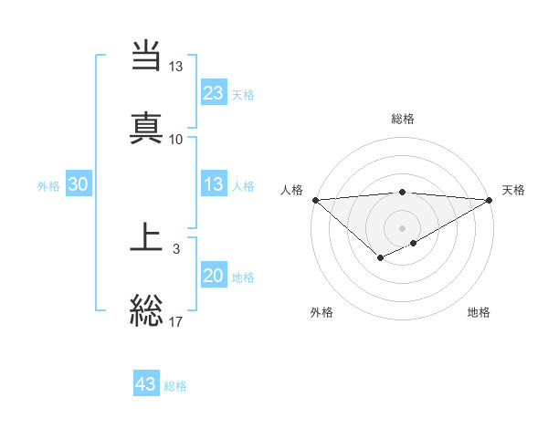 当真 上総さんの地格は20画の1点!