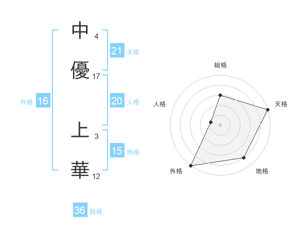 中優 上華さんの天格は21画の5点!