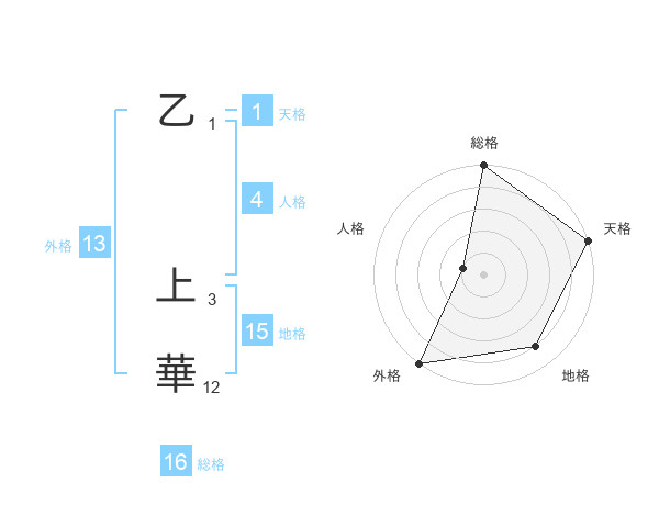 乙 上華さんの総格は16画の5点!