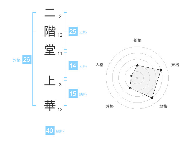 二階堂 上華さんを姓名の画数から五運を鑑定