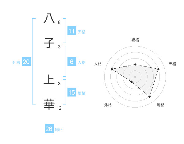 八子 上華さんの総格は26画の2点!