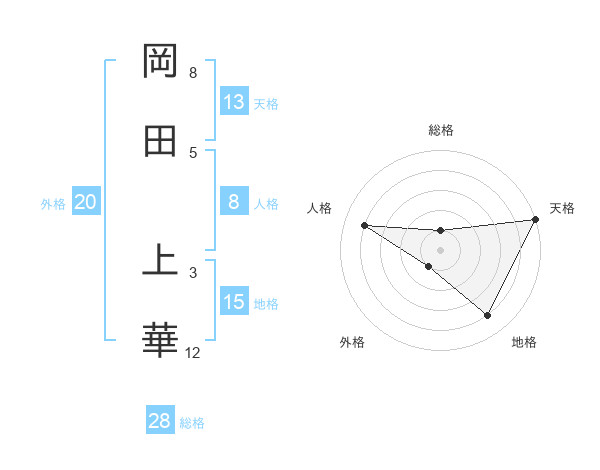 岡田 上華さんの天格は13画の5点!