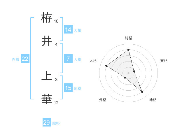 栫井 上華さんの総格は29画の4点!
