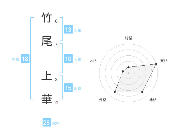 竹尾 上華さんの総格は28画の1点!