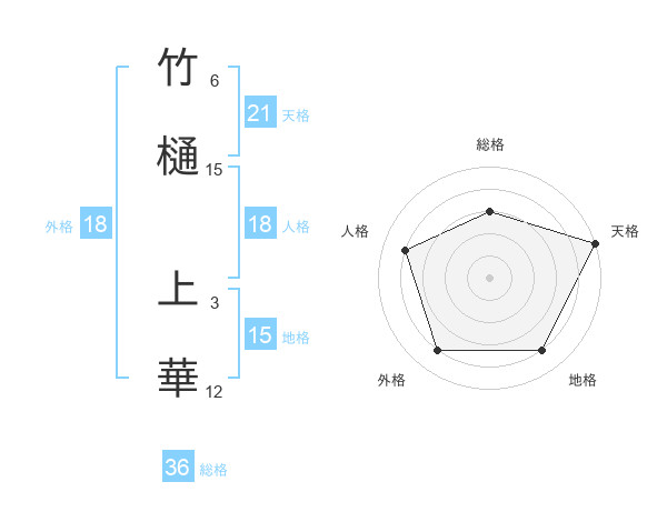 竹樋 上華さんの天格は21画の5点!