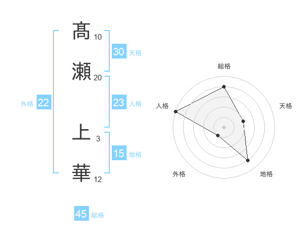 髙瀬 上華さんの総格は45画の4点!